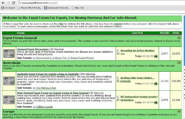 Superb forums exist for Greece, Spain, Hong Kong, Singapore, and Thailand. The leading general-info expat forum is the aptly named Expat Forum.